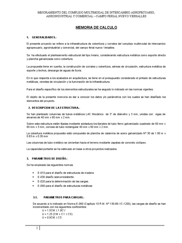 MEMORIA DE CALCULO ESTRUCTURA DE TECHO CORRALES DE VACUNOS OVINOS Y CAMELIDOS