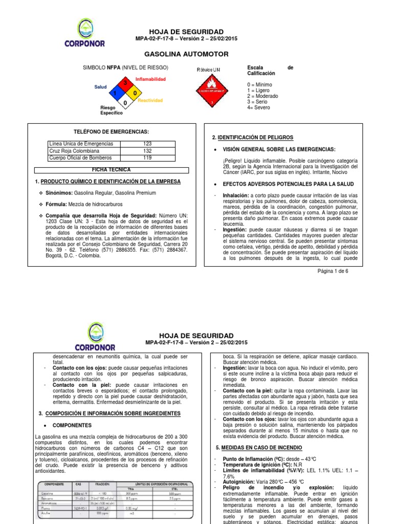 1203 Clase UN: 3 - Esta hoja de datos de seguridad es el