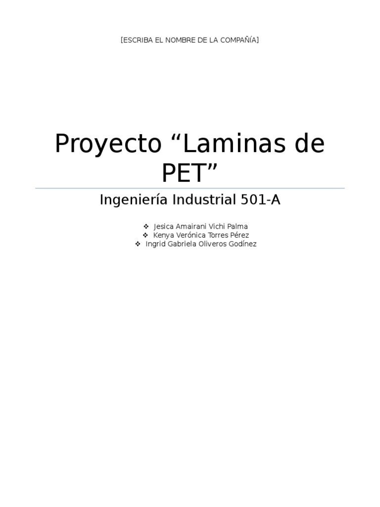 producidas de lminas de PET. Las lminas de PET son un tipo de mercado en