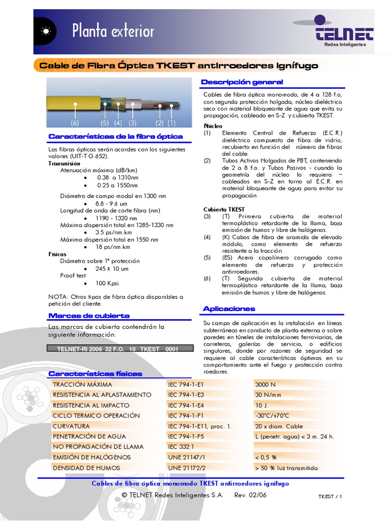 Cables de fibra ptica monomodo TKEST antirroedores ignfugo
