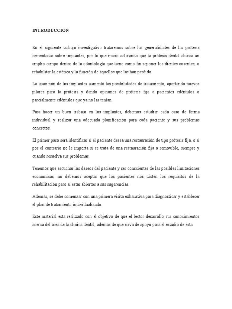 cementadas sobre implantes, por lo que inicio aclarando que la prtesis dental abarca un
