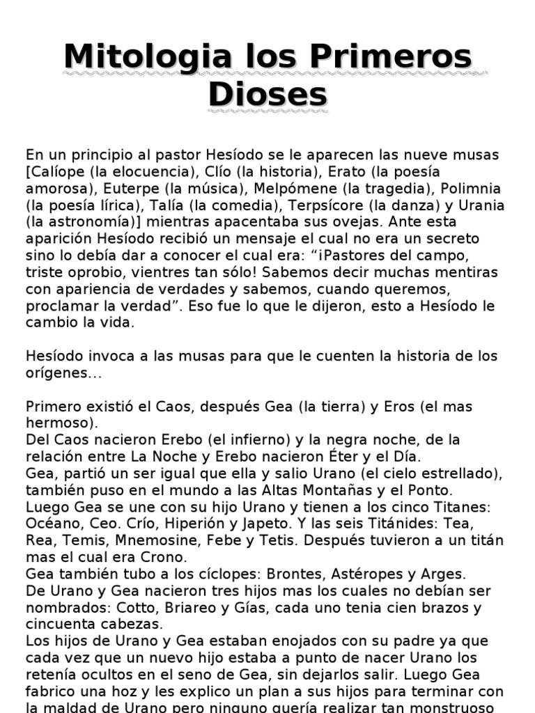 Primero existió el Caos, después Gea (la tierra) y Eros (el mas