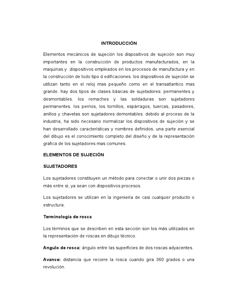 permanentes. los pernos, los tornillos, esprragos, tuercas, pasadores,