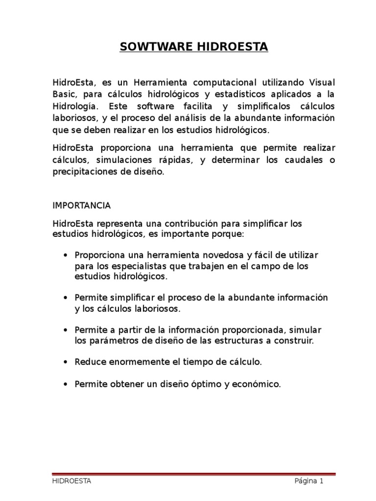 HidroEsta, es un Herramienta computacional utilizando Visual