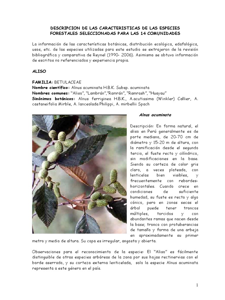 Nombres comunes: Aliso, Lambrn,Ramrn, Ramrash, Huayau