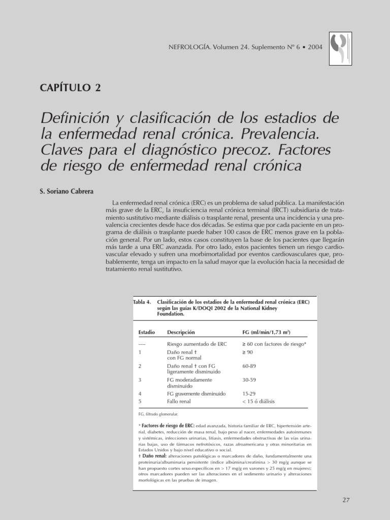 de las guías de práctica clínica K/DOQI una definición y una clasificación de la ERC con
