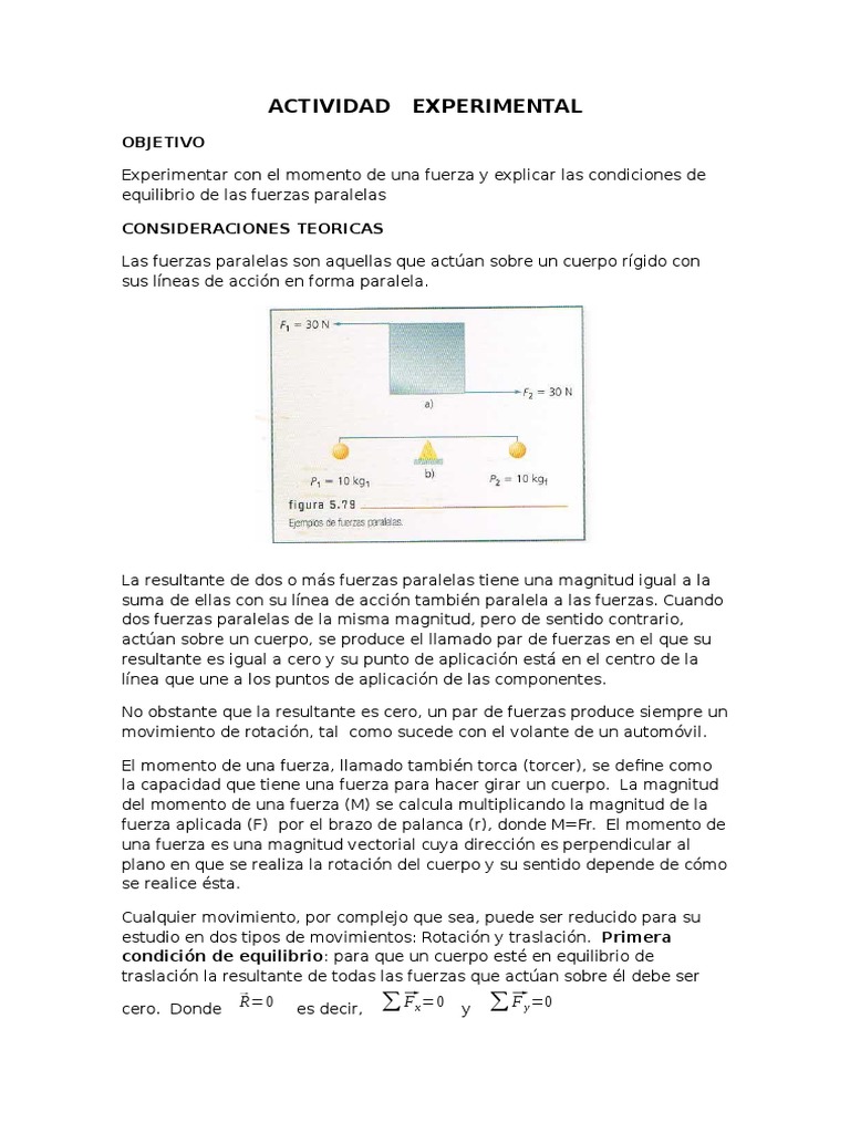 Experimentar con el momento de una fuerza y explicar las condiciones de