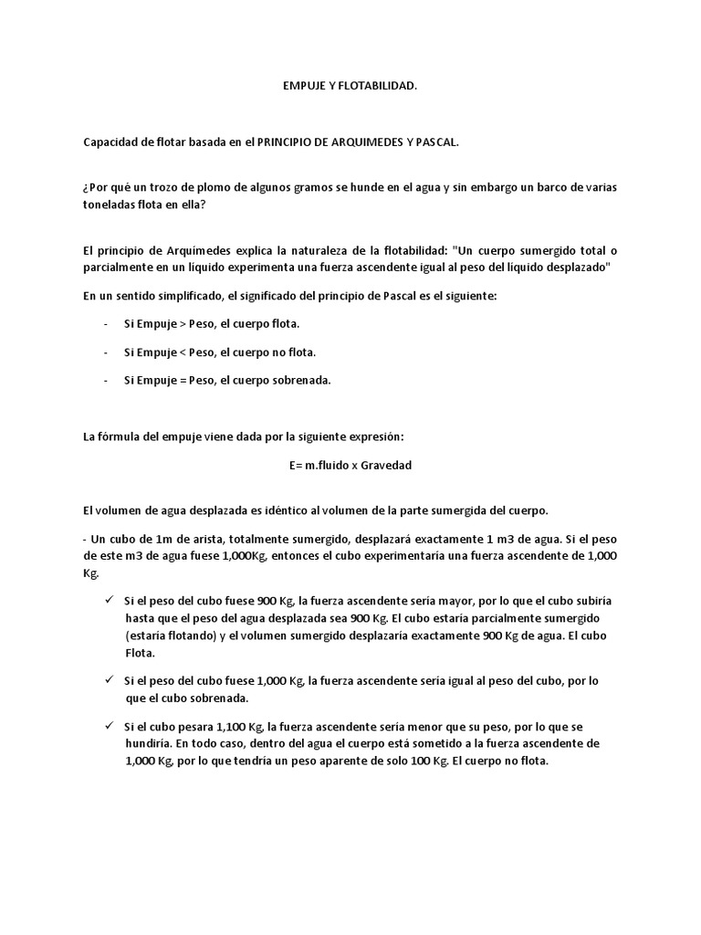 Ya hemos visto que la fuerza ascendente que acta sobre un cuerpo parcial o totalmente sumergido