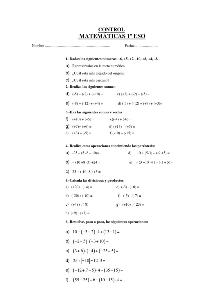 1.-Dados los siguientes números: -6, +5, +2, -10, +8, +4, -3.