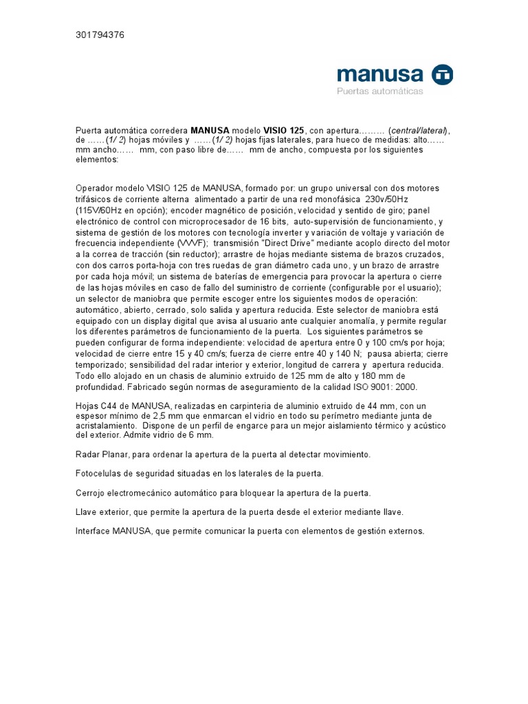 Puerta automtica corredera MANUSA modelo VISIO 125, con apertura (central/lateral),