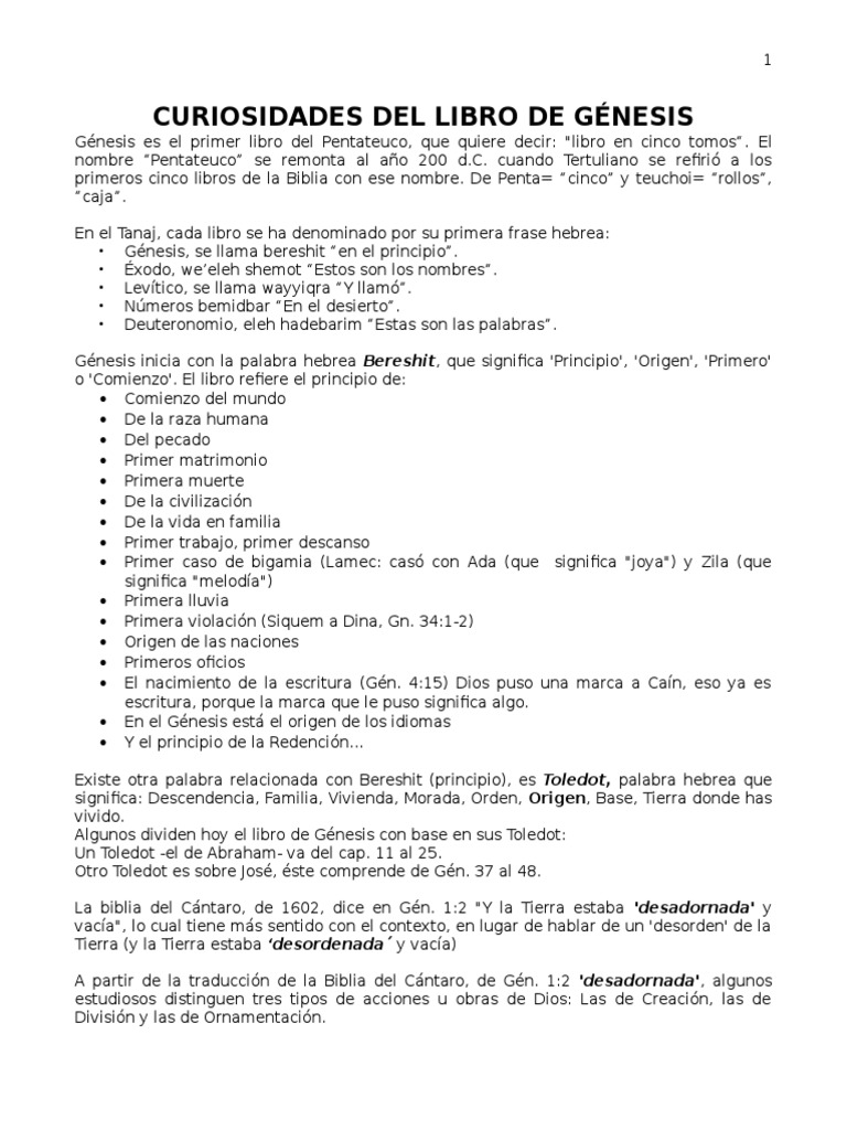 CURIOSIDADES DEL LIBRO DE GNESIS