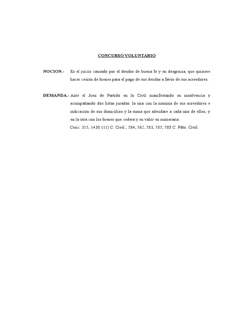 DEMANDA.- Ante el Juez de Partido en lo Civil manifestando su insolvencia y