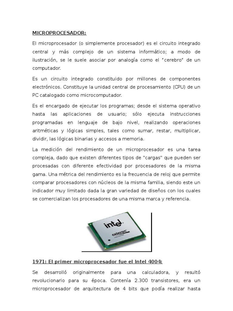 electrnicos. Constituye la unidad central de procesamiento (CPU) de un