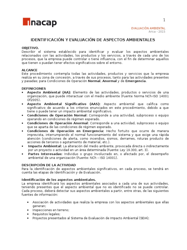 IDENTIFICACIN Y EVALUACIN DE ASPECTOS AMBIENTALES