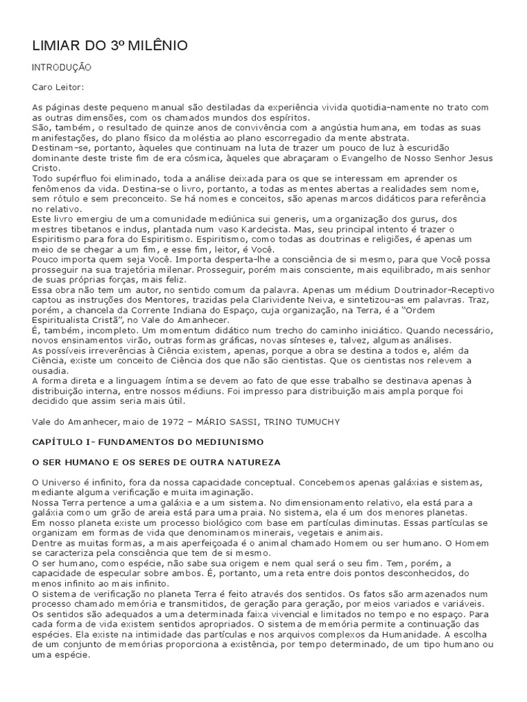 captou as instrues dos Mentores, trazidas pela Clarividente Neiva, e sintetizou-as em palavras. Traz,