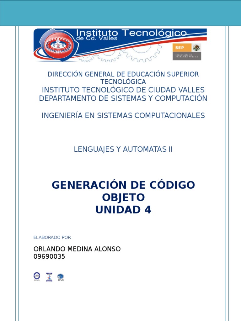 Consulta a la pgina Web: http://programaciondesistemasito.blogspot.mx/2013/10/unidad-8generacion-de-codigo-objeto.html