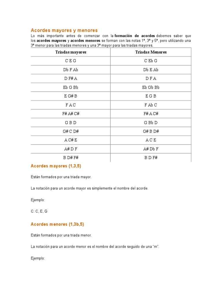 los acordes mayores y acordes menores se forman con las notas 1, 3 y 5, pero utilizando una