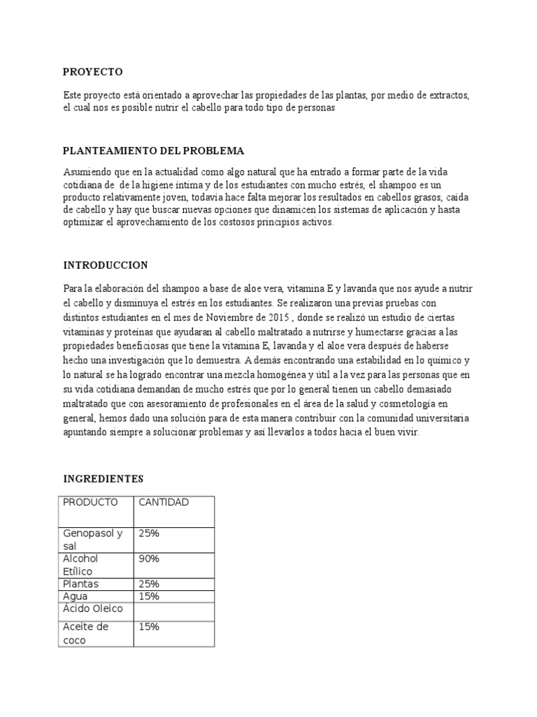 Nuestra empresa fue creada para la elaboracin de shampoo de sbila con el objetivo de brindarles a los consumidores una