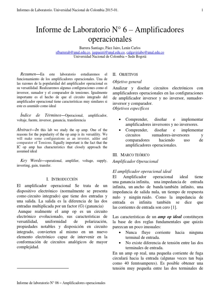 Informes de Laboratorio. Universidad Nacional de Colombia 2015-01.