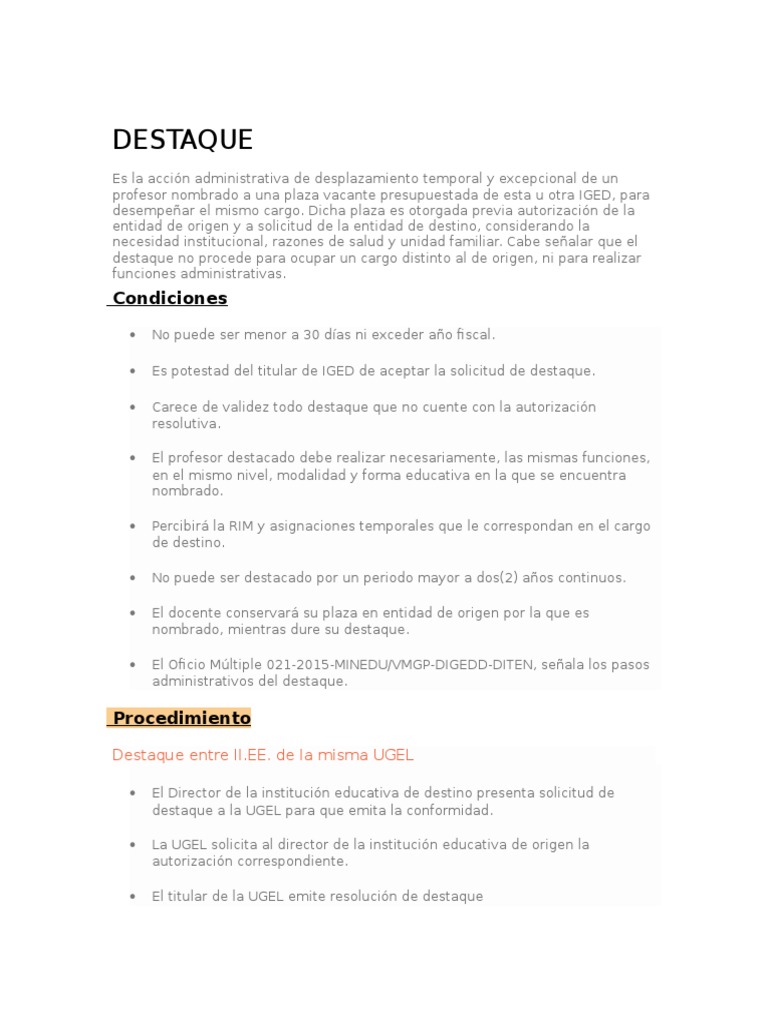 sede administrativa de destino emite resolucin de destaque.