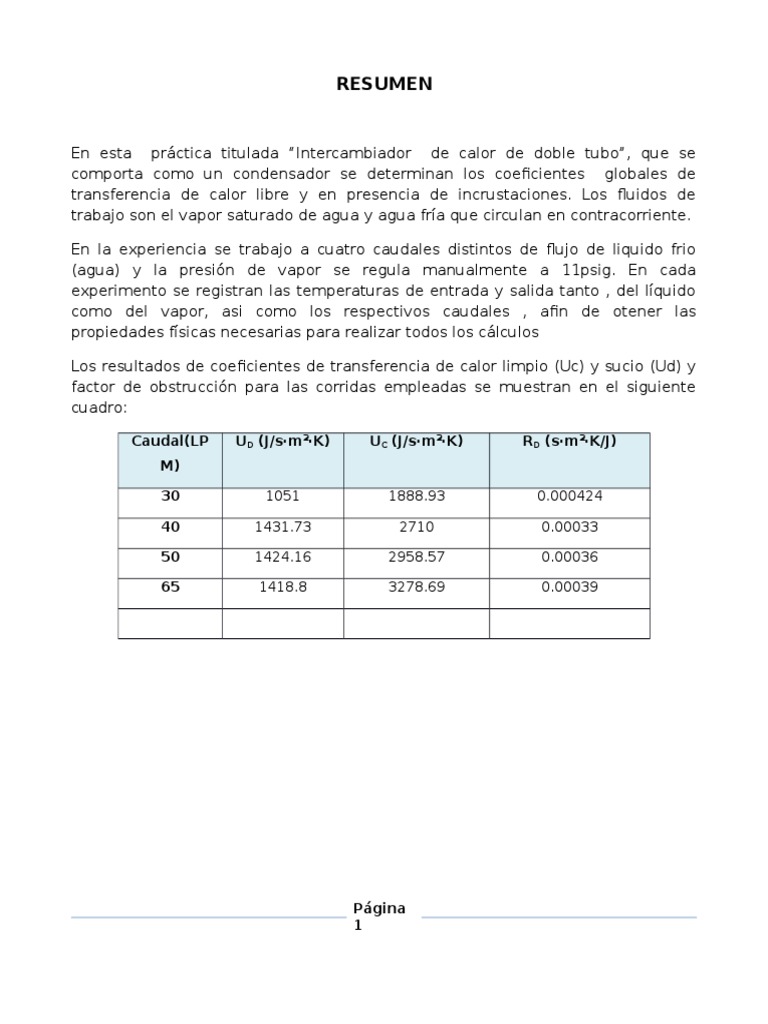 En esta prctica titulada Intercambiador de calor de doble tubo, que se