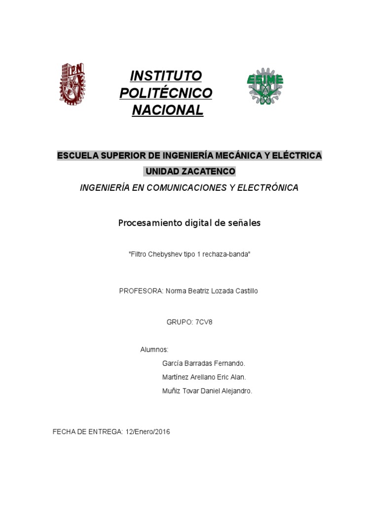 Resumen: En este trabajo se presenta el desarrollo de un filtro de Chebyshev tipo 1