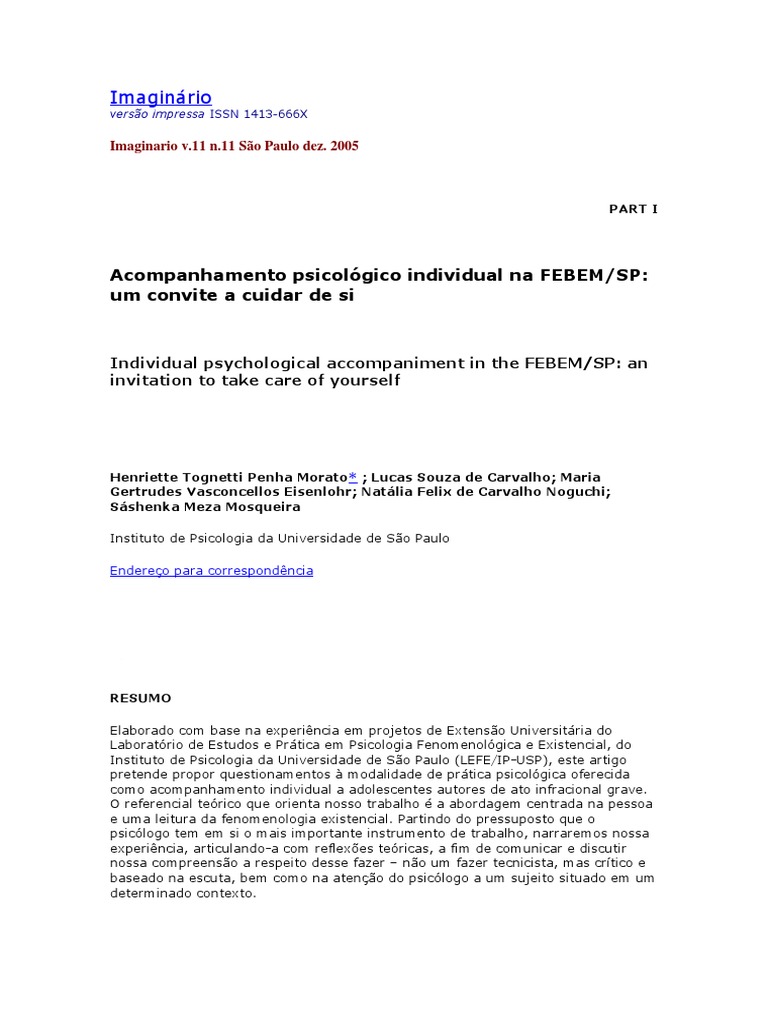 MORATO, Henriette Tognetti Penha et al . Acompanhamento psicolgico individual na FEBEM/SP: um