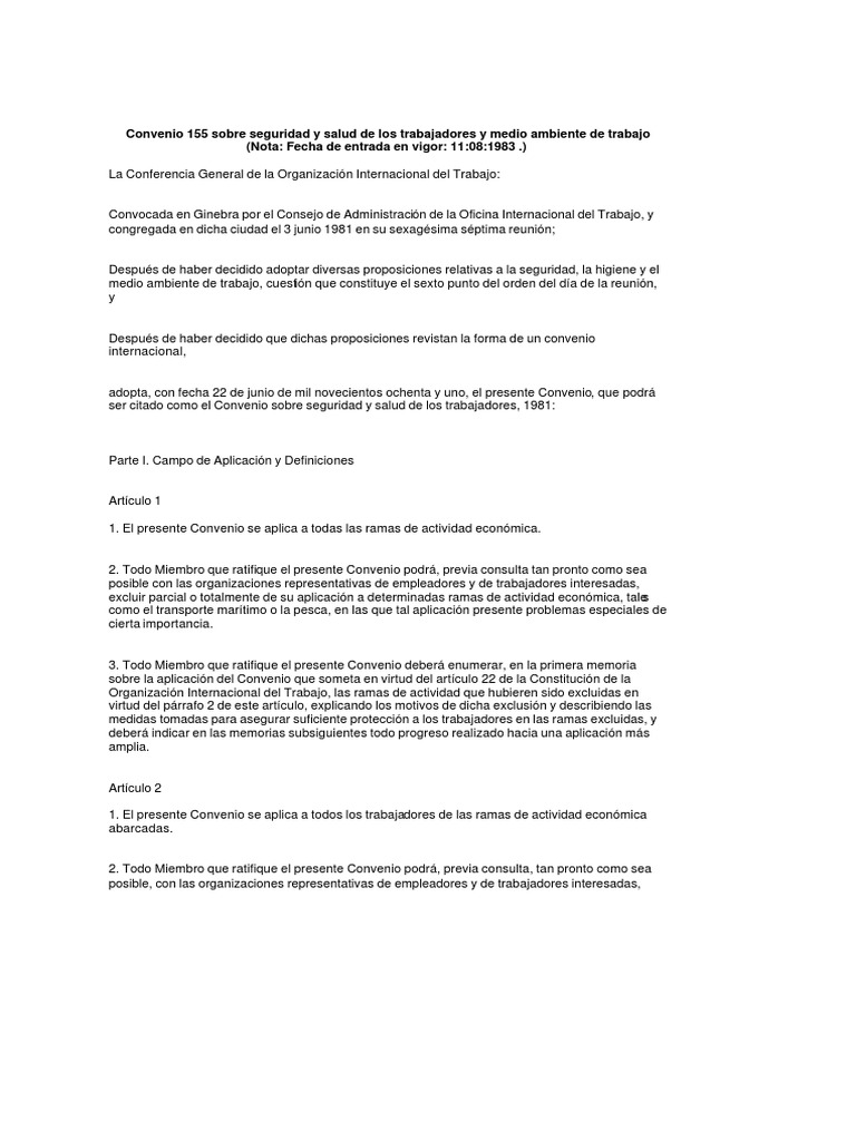 Convenio 155 sobre seguridad y salud de los trabajadores y medio ambiente de trabajo