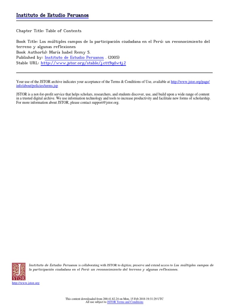 Book Title: Los mltiples campos de la participacin ciudadana en el Per: un reconocimiento del