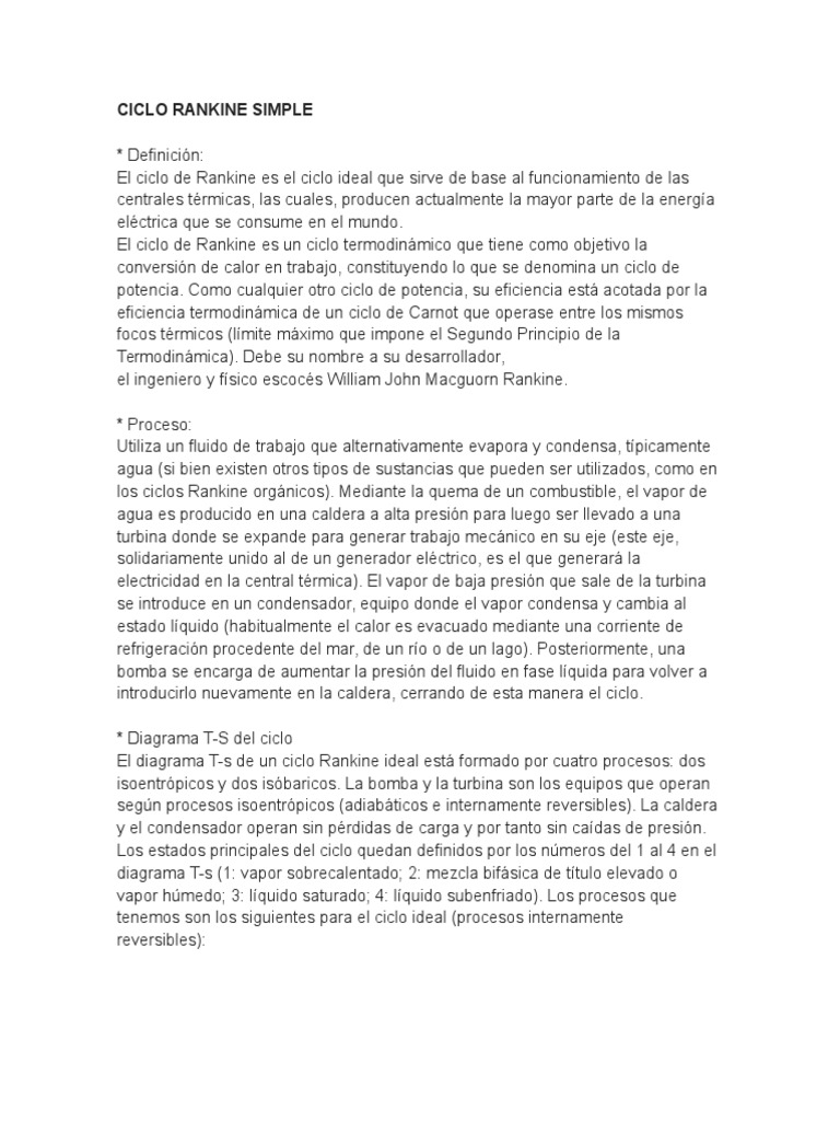 El ciclo de Rankine es un ciclo termodinmico que tiene como objetivo la