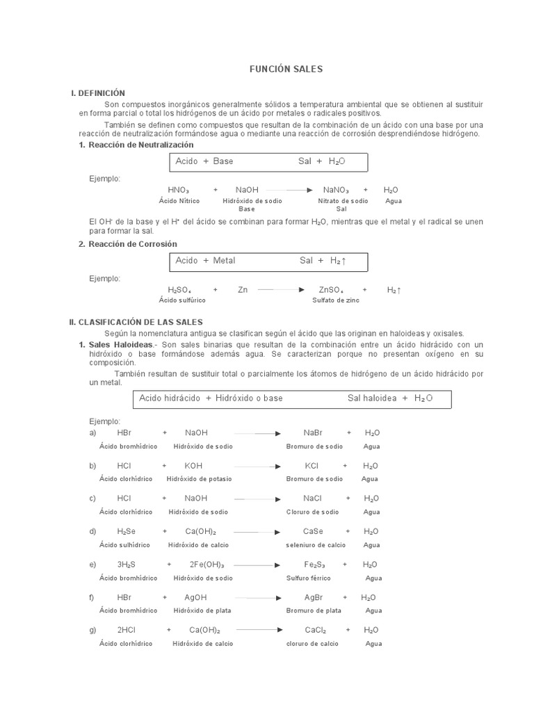 Tambin se definen como compuestos que resultan de la combinacin de un cido con una base por una