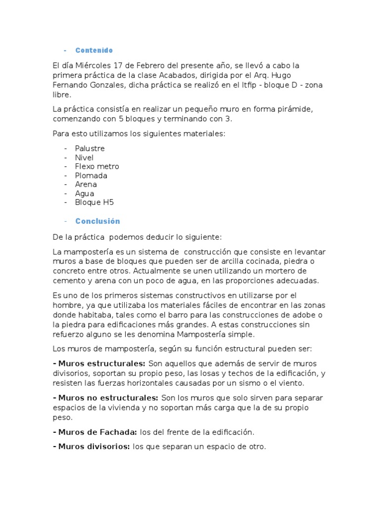 La prctica consista en realizar un pequeo muro en forma pirmide,