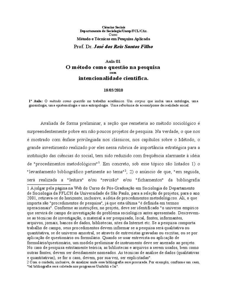 mencionamos mtodo em Sociologia, no obstante a possibilidade de identificao de
