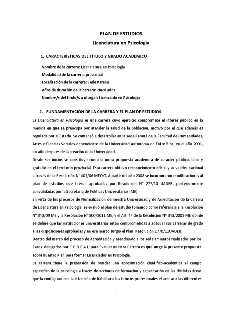sobre nuestro Plan para formar Licenciados en Psicologa.