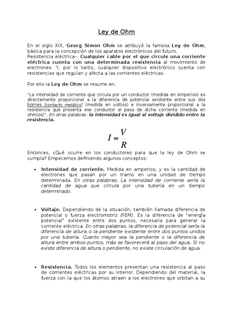 ohmios). En otras palabras: la intensidad es igual al voltaje dividido entre la