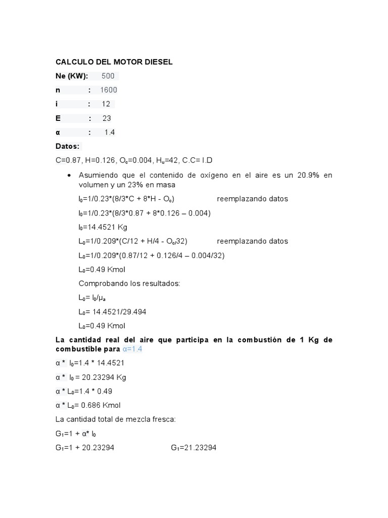CALCULO DEL MOTOR DIESEL
