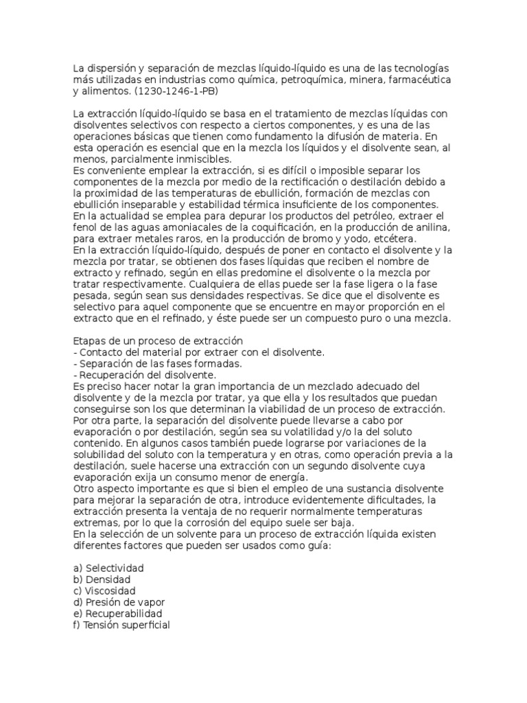 La dispersin y separacin de mezclas lquido-lquido es una de las tecnologas
