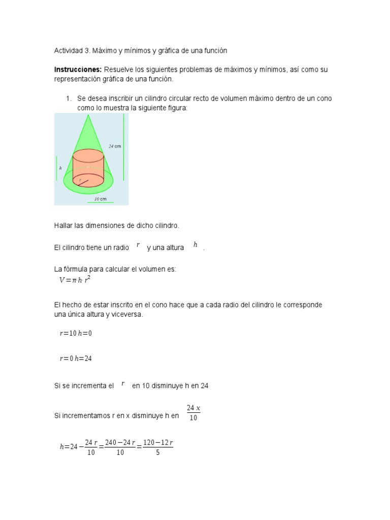 1. Se desea inscribir un cilindro circular recto de volumen mximo dentro de un cono