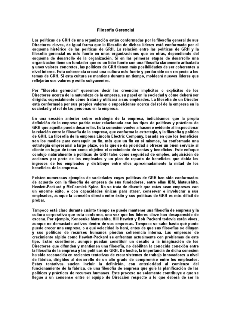 Por "filosofa gerencial" queremos decir las creencias implcitas o explcitas de los