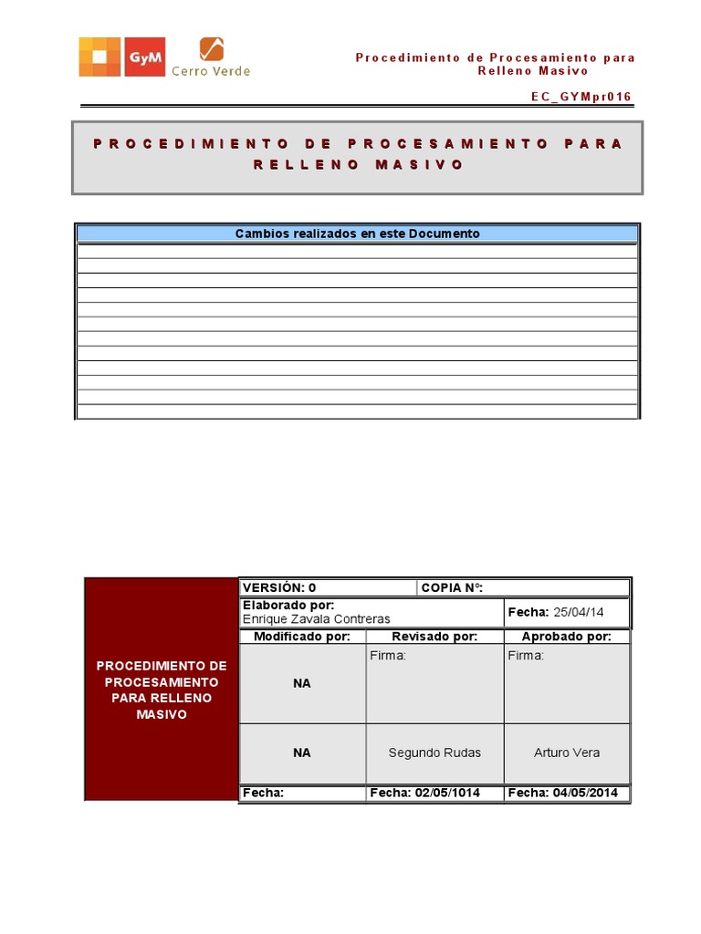 Proporcionar instrucciones para la realizacin de los trabajos de Procesamiento para relleno Masivo,