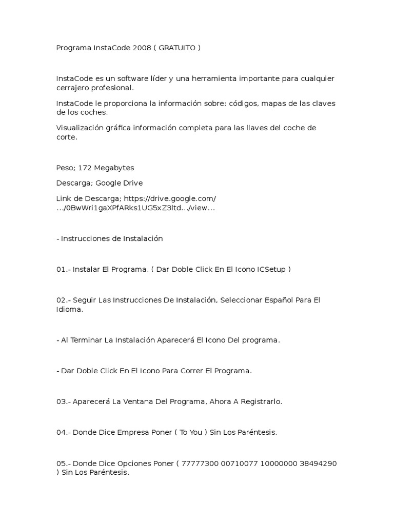 InstaCode le proporciona la informacin sobre: cdigos, mapas de las claves