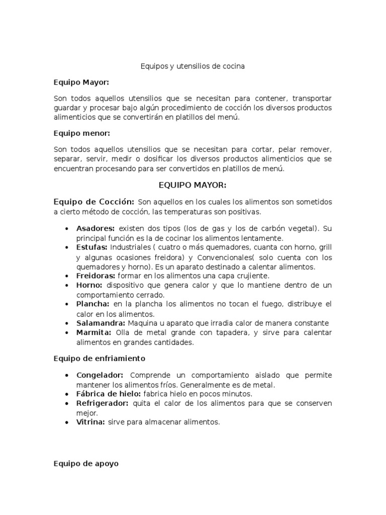 Equipo de Coccin: Son aquellos en los cuales los alimentos son sometidos