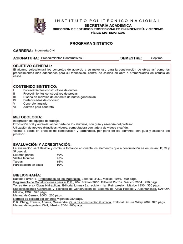 Las asignaturas antecedentes son: Movimientos de Tierra, Procedimientos Constructivos I, entre otras.