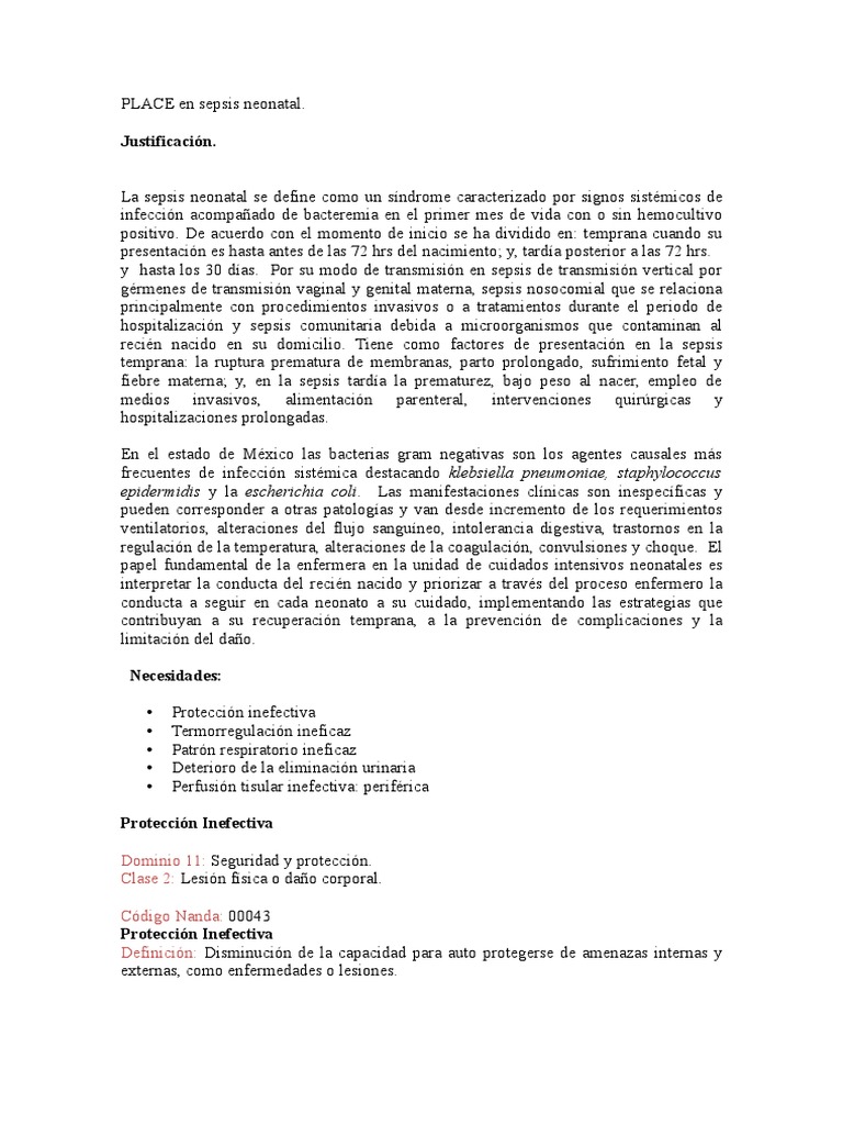 recin nacido en su domicilio. Tiene como factores de presentacin en la sepsis