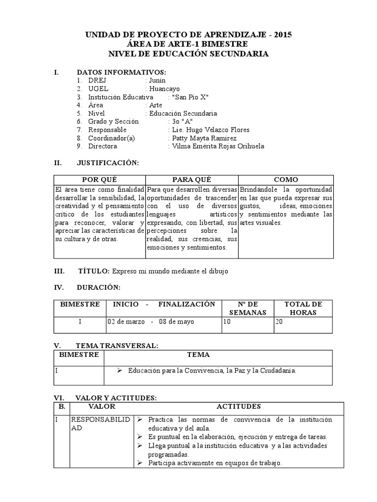 UNIDAD DE PROYECTO DE APRENDIZAJE - 2015