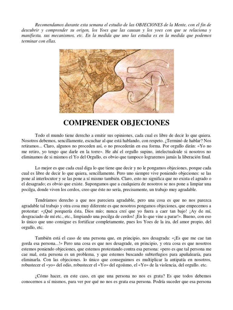Recomendamos durante esta semana el estudio de las OBJECIONES de la Mente, con el fin de