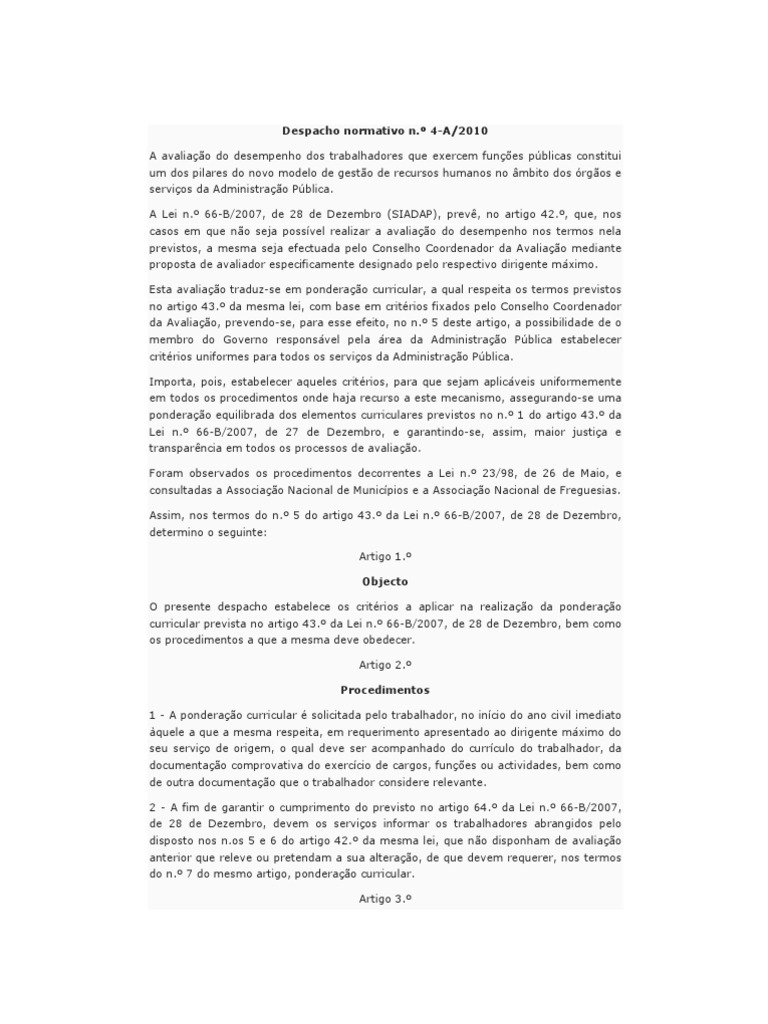 curricular prevista no artigo 43.º da Lei n.º 66-B/2007, de 28 de Dezembro, bem como