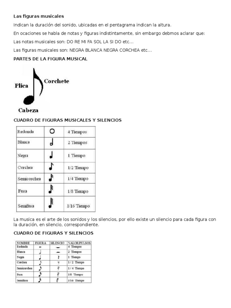 Las figuras musicales son: NEGRA BLANCA NEGRA CORCHEA etc