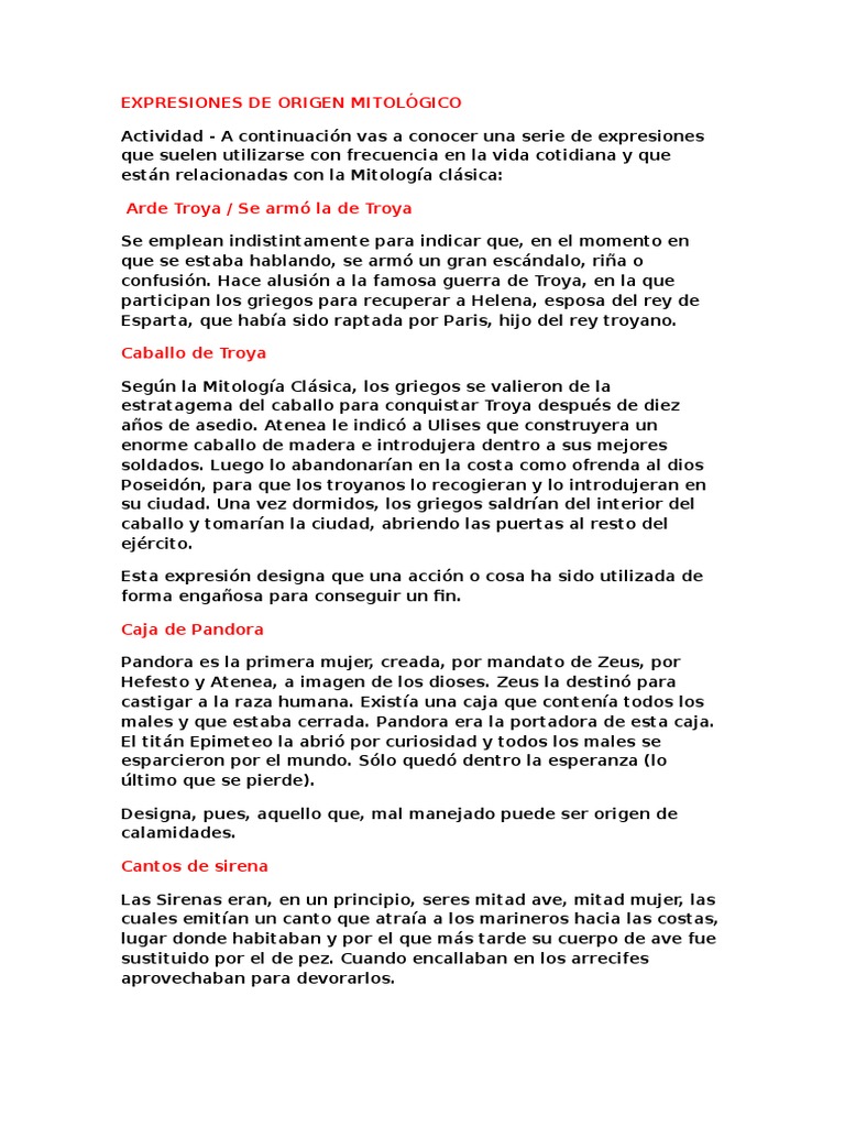 Segn la Mitologa Clsica, los griegos se valieron de la