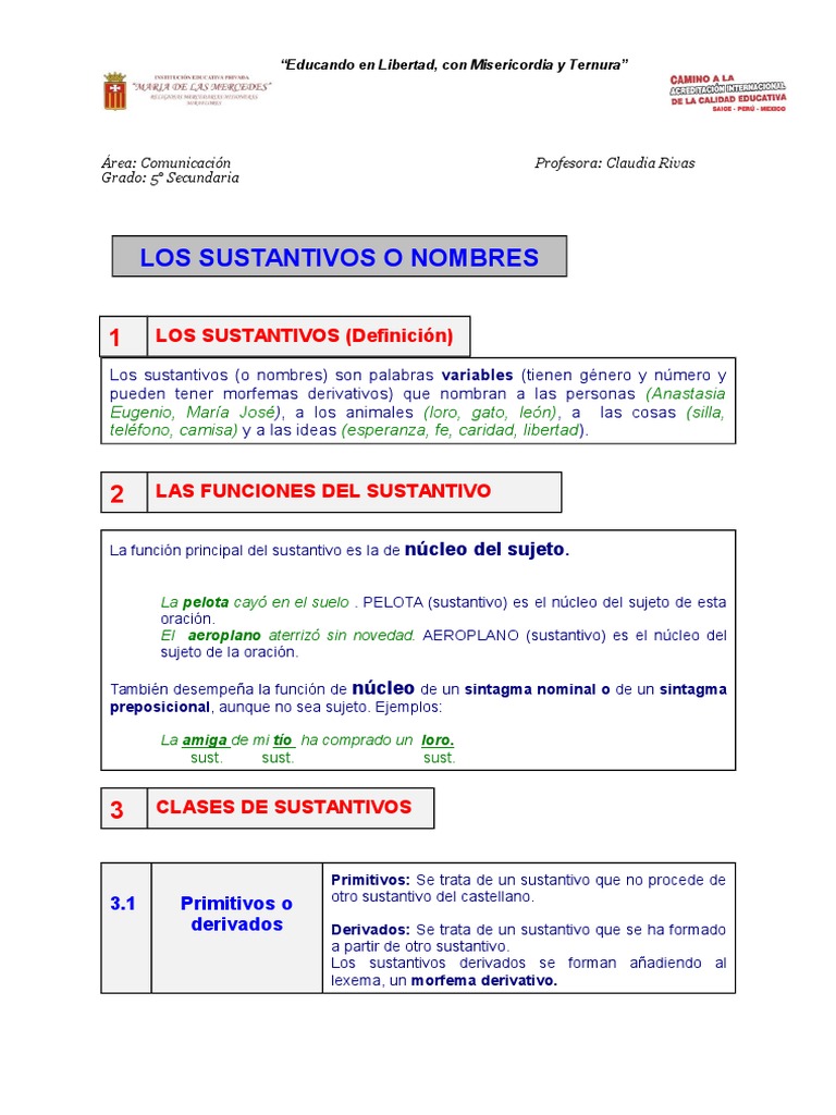 Los sustantivos (o nombres) son palabras variables (tienen gnero y nmero y
